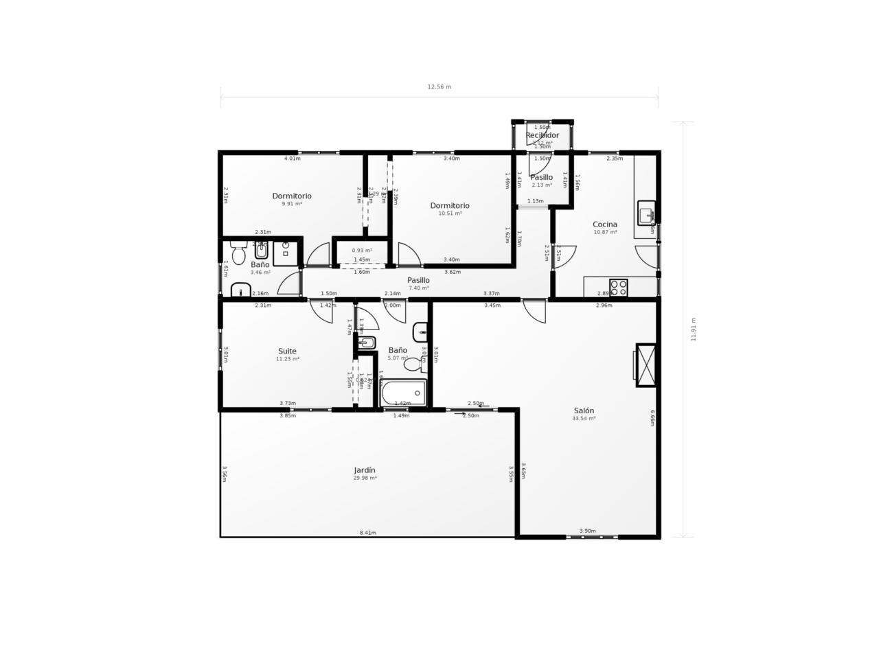 Casa en planta de 130 m2 + porche terraza trasero de 30 m2