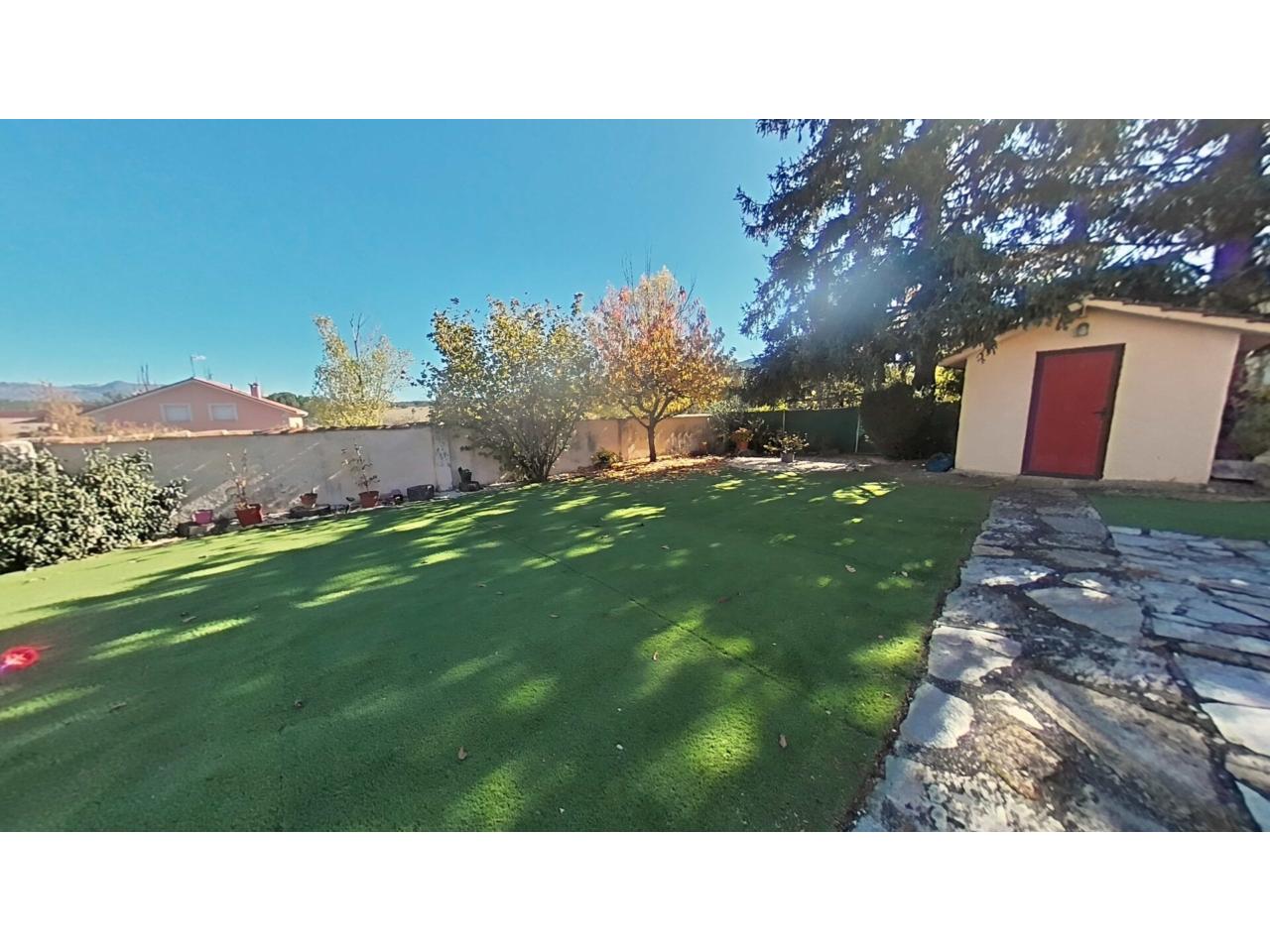 Finca totalmente vallada con Jardin excelente, muy bien cuidado, con arboles frutales y riego automático.